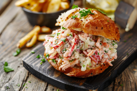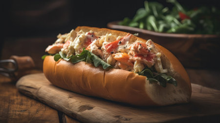 Macro Photo Lobster Roll On Stone Rustic Pub