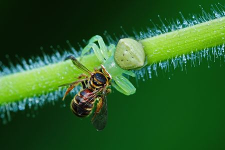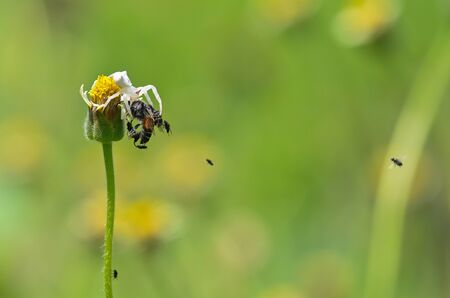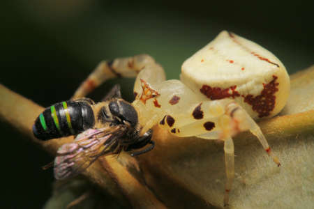 Crab Spider eating Bee in Southeast Asia.