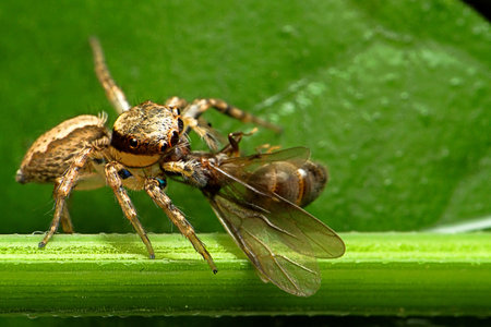 Evarcha arcuata jumping spider feeding drosophila fly