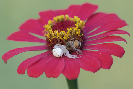 White Crab Spiders disguise themselves as flower petals and catah been to eat