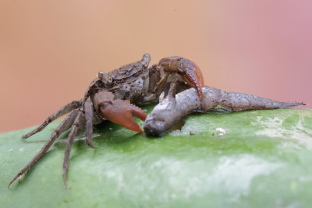 close up of crab on green leaf in nature or in the garden