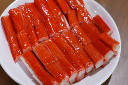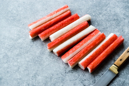 Fresh Crab Sticks Surimi Ready to Eat. Fast Food.