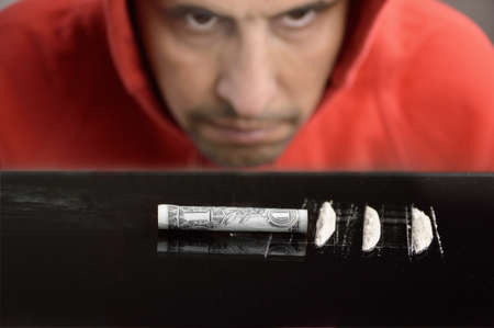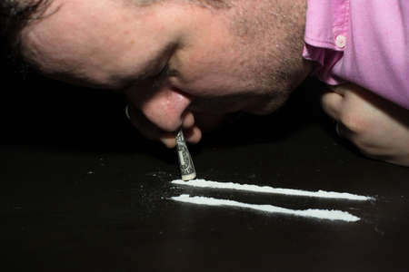 Close up of drug addict snorting cocaine