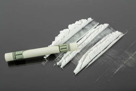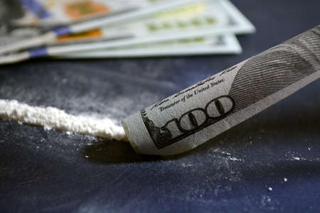 Lines of cocaine and one hundred dollar bill