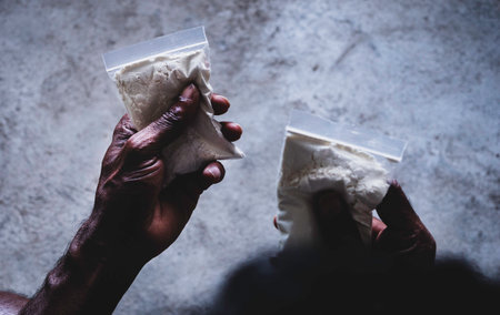 Close up of Heroin drugs in hand