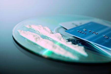 A person with money buys a dose of cocaine or heroin or other drug from a drug dealer.