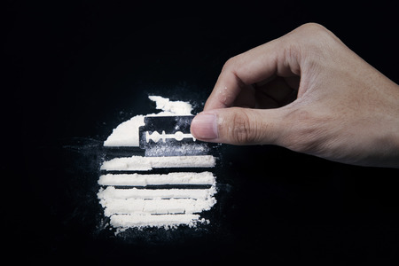Drugs user preparing drugs to used with razor blade