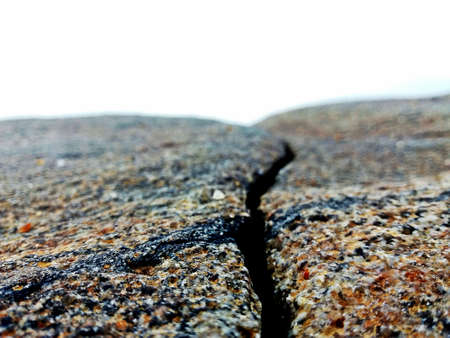 Shallow depth of field. Photo is blurred. Cracked concrete. Cracks in concrete are caused by internal tensile stresses caused by external forces, volume changes and creep.