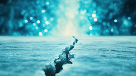 Abstract Cracked Ice Texture Illuminated by Sunset, Nature s Frozen Art Capturing Beautiful Detail
