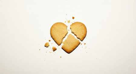 Broken Heart Shaped Cookie with Crumbs Flat Lay