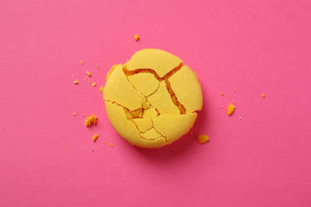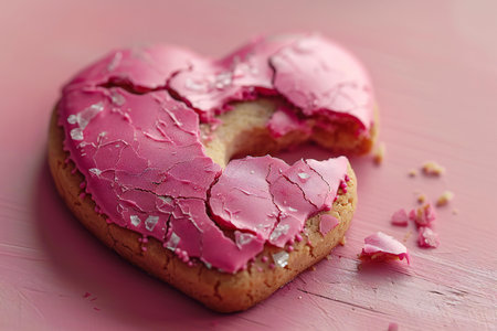 Featuring a broken pink heart cookie on a pink background, high quality, high resolution