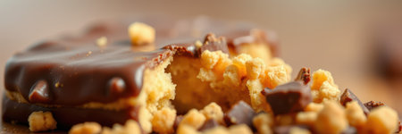 Delicious chocolate-covered snack with crunchy coating and a bite taken out