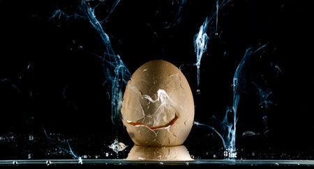 egg splashing . over black