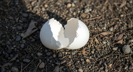 Broken eggshell on the ground. Conceptual photo of crisis