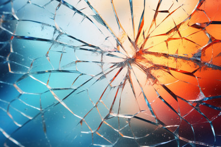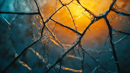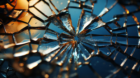 A stunning image of shattered glass creating a captivating pattern, illuminated by light. This abstract composition highlights the contrast between fragility and strength.