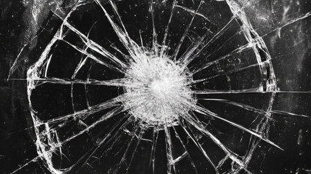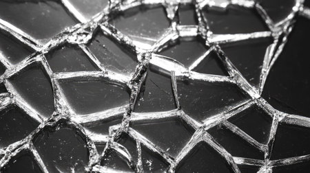 Explore the intricate beauty of shattered glass with detailed patterns and textures. Perfect for artistic projects and background design in monochrome.