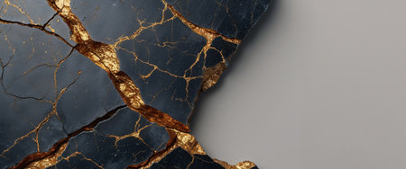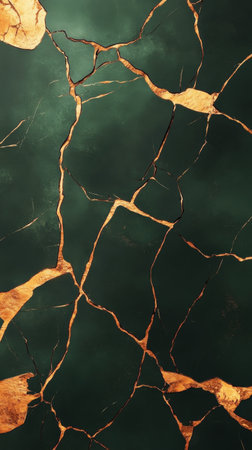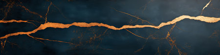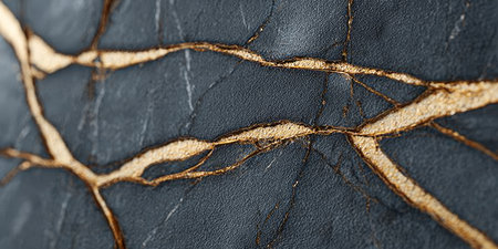 This stunning close-up captures the intricate details of a textured surface, showcasing cracks adorned with golden inlays against a dark backdrop, perfect for artistic projects.