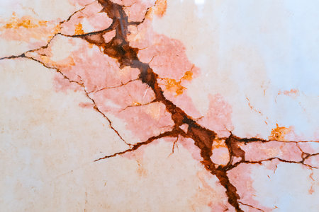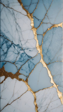 Concrete surface shows cracks with golden lines, highlighting the contrast between textures and colors in a unique way.