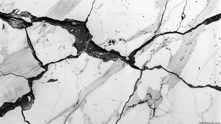 Marble white luxury tile with abstract black pattern of cracks grunge wall texture background. Generative AI
