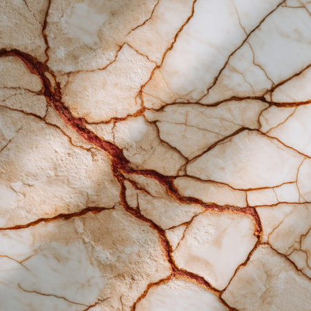 A stunning image of a beige marble surface featuring intricate cracks and natural veins, perfect for design projects, backgrounds, or textures in decor applications.
