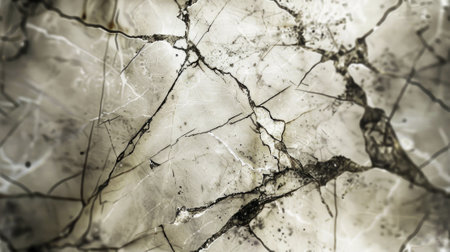 AI Generated. Cracked White Marble Surface with Dark Veins and Imperfections