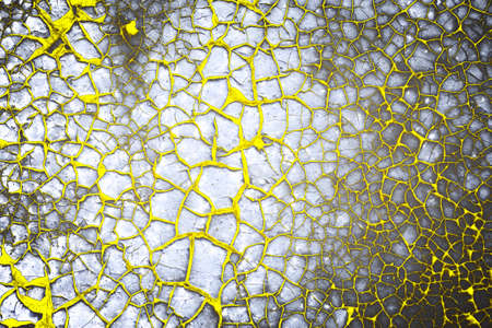 Abstract empty ragged painted metal cracked grunge silver gray old background with yellow veined texture