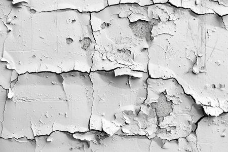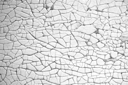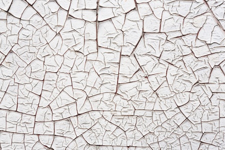 Cracked white paint on old weathered surface texture abstract background pattern.