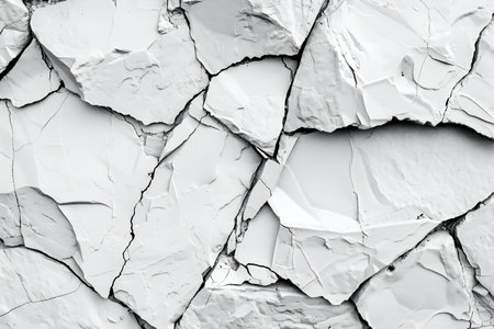 Coarse White Cement Wall Texture with Irregular Polygonal Cracks Detail