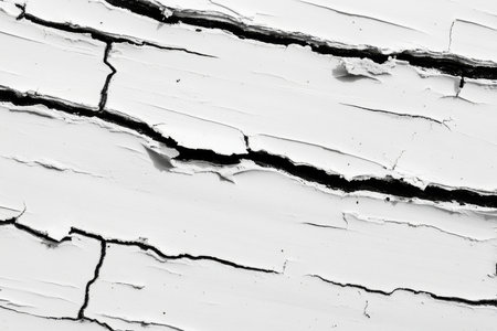 White paint black cracks background. Scratched lines texture. White and black distressed grunge concrete wall pattern for graphic design. Peel paint crack. Weathered rustic surface. Dry paint overlay.