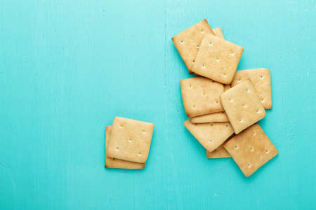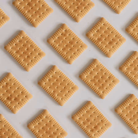 Square cookies on multi color background. Nutritious foods associated with protein and fiber.Close-up top view, concept of food.