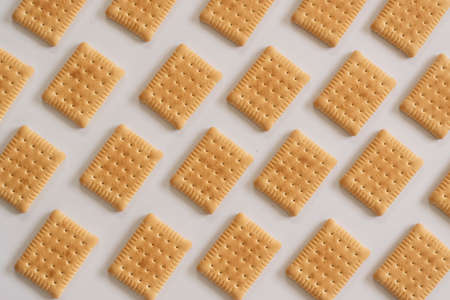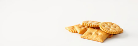 Delicious crunchy crackers arranged on a clean white surface perfect for snacking or serving with dips