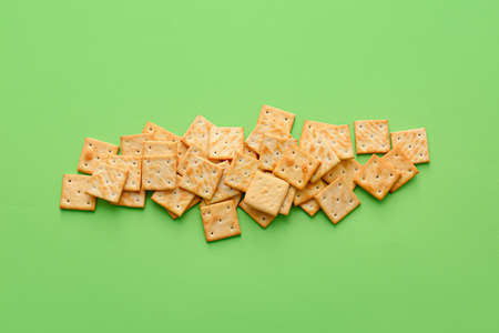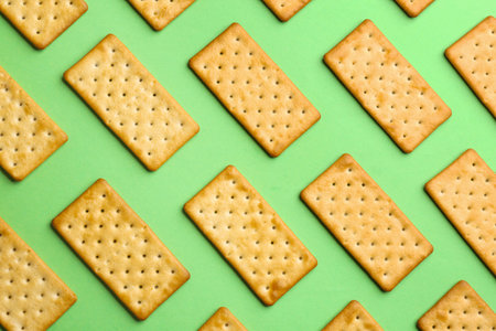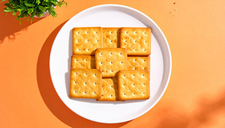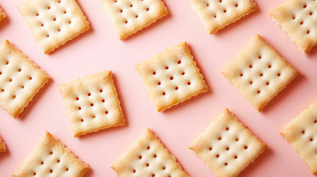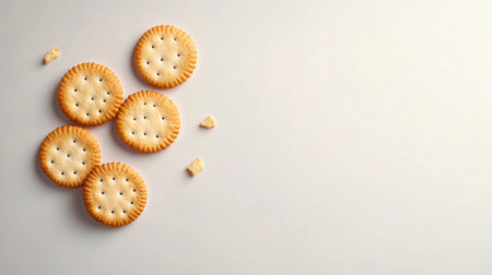 A visually appealing composition featuring crunchy savory crackers in a simple arrangement. Perfect for culinary projects, recipe development, and food photography.