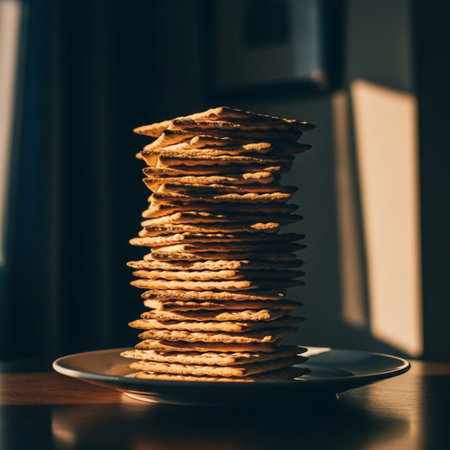 Savory crackers stacked on a clean surface showcasing their golden color and crisp texture