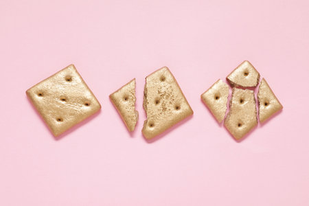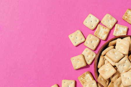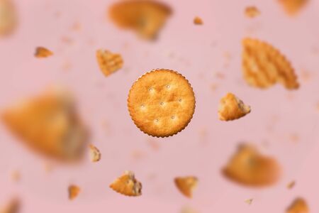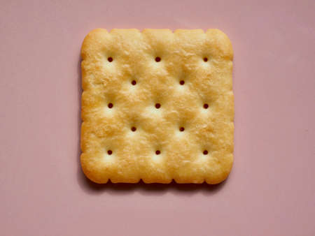 Creative Concept Tasty Biscuit Cheese Flavour on Pink Background