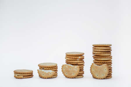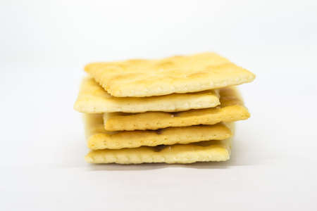Pile of crackers with white background