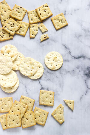 A selection of delicious salty crackers perfect for using as a background