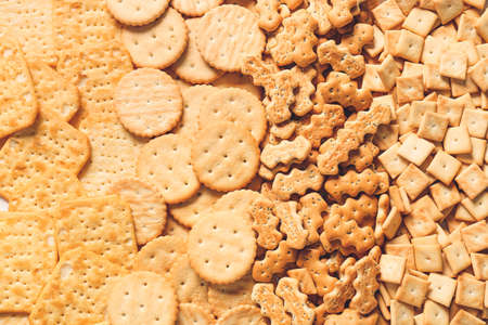 Tasty different crackers as background