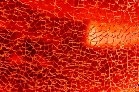 Broken tempered glass. Glass web of cracks. Changed color scheme. colorful background