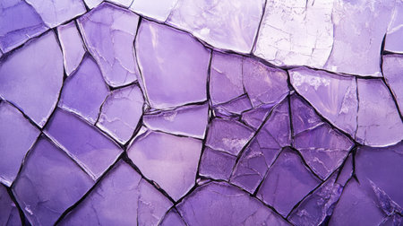 This abstract image showcases a captivating purple shattered glass surface, featuring intricate cracks and patterns, ideal for backgrounds and creative designs.