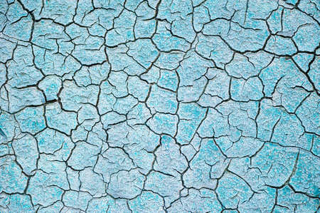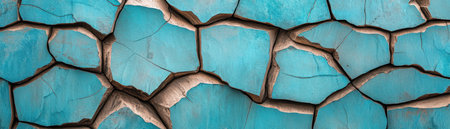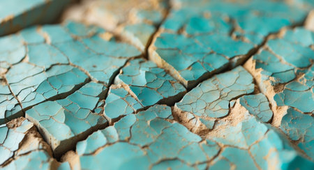 A visually striking abstract texture featuring cracked turquoise paint on a canvas, showcasing unique lines and patterns ideal for various creative applications and designs.