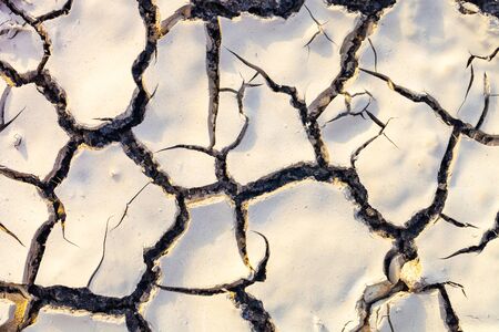 Desiccation cracks texture top view, dried and contracted muddy sediment from above