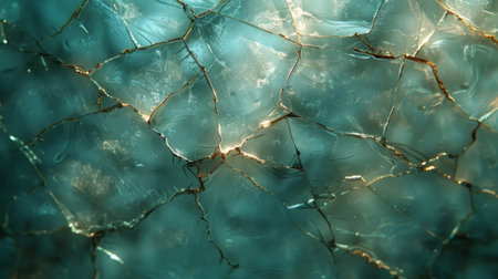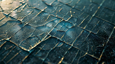This image features a close-up of a cracked textured surface with gold accents on a dark blue background, ideal for artistic projects and modern designs.