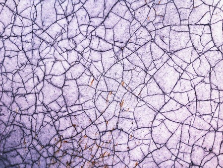 Shallow depth of field. Photo is blurred. Cracked concrete. Cracks in concrete are caused by internal tensile stresses caused by external forces, volume changes and creep.