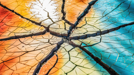Explore an engaging abstract background featuring colorful cracked glass with dynamic textures and rich hues, perfect for vibrant art projects.
