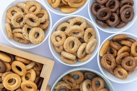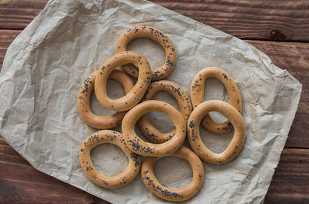 put on the traditional crispy and dry bread product, traditional Slavic food bagels made of wheat flour