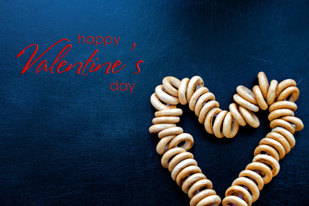 Russian drying of wheat flour in the form of a heart. Russian cuisine. Valentine's day concept.