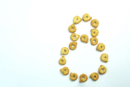 March 8, International Womens Day, homemade cookies, bagels, on a white surface.