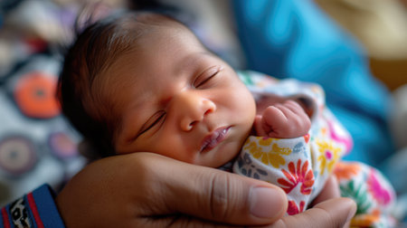 A serene moment capturing a newborn baby peacefully resting on their mother's chest, embodying love and tenderness in a cozy embrace.