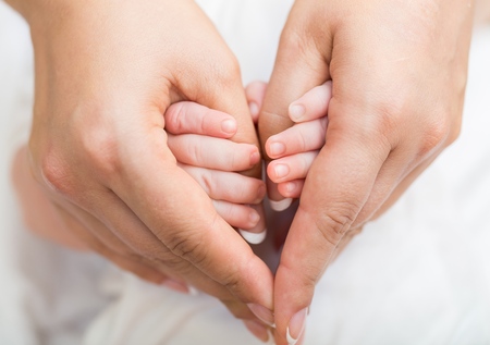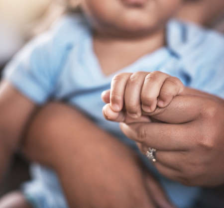 Tiny hands that bring great love. Closeup shot of a mother holding her baby boys hands at home.
