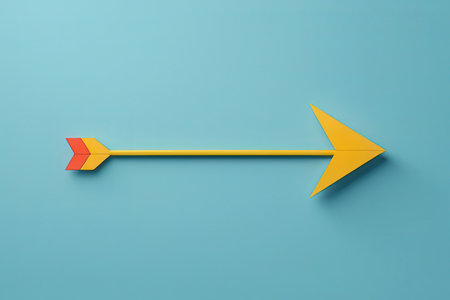 A striking image of a turquoise arrow and a silver pen positioned on a vibrant two-tone background of turquoise and yellow, ideal for creative projects.